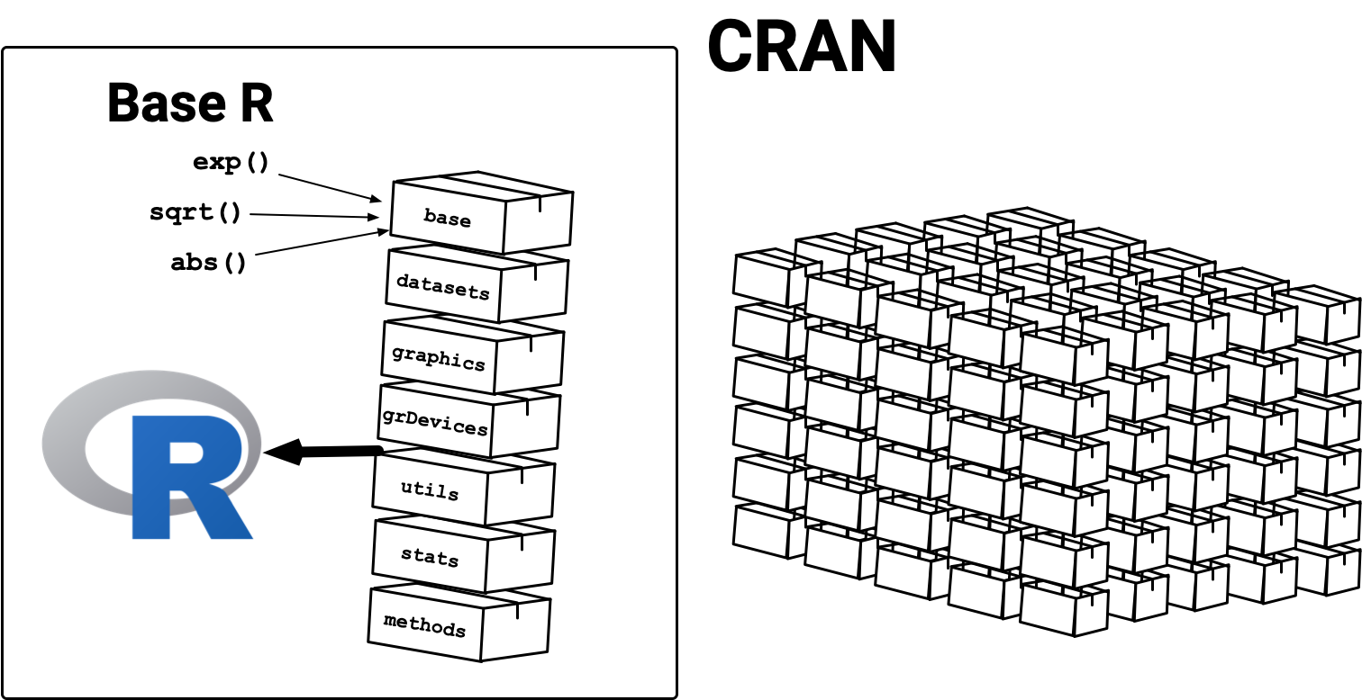 base,datasets,graphics,grDevices,utils,stats,methods,collectively referred to as “Base R”, that are loaded automatically when you launch it.