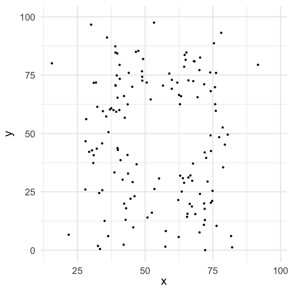Consider the following dataset with two variables, \(x\) and \(y\):