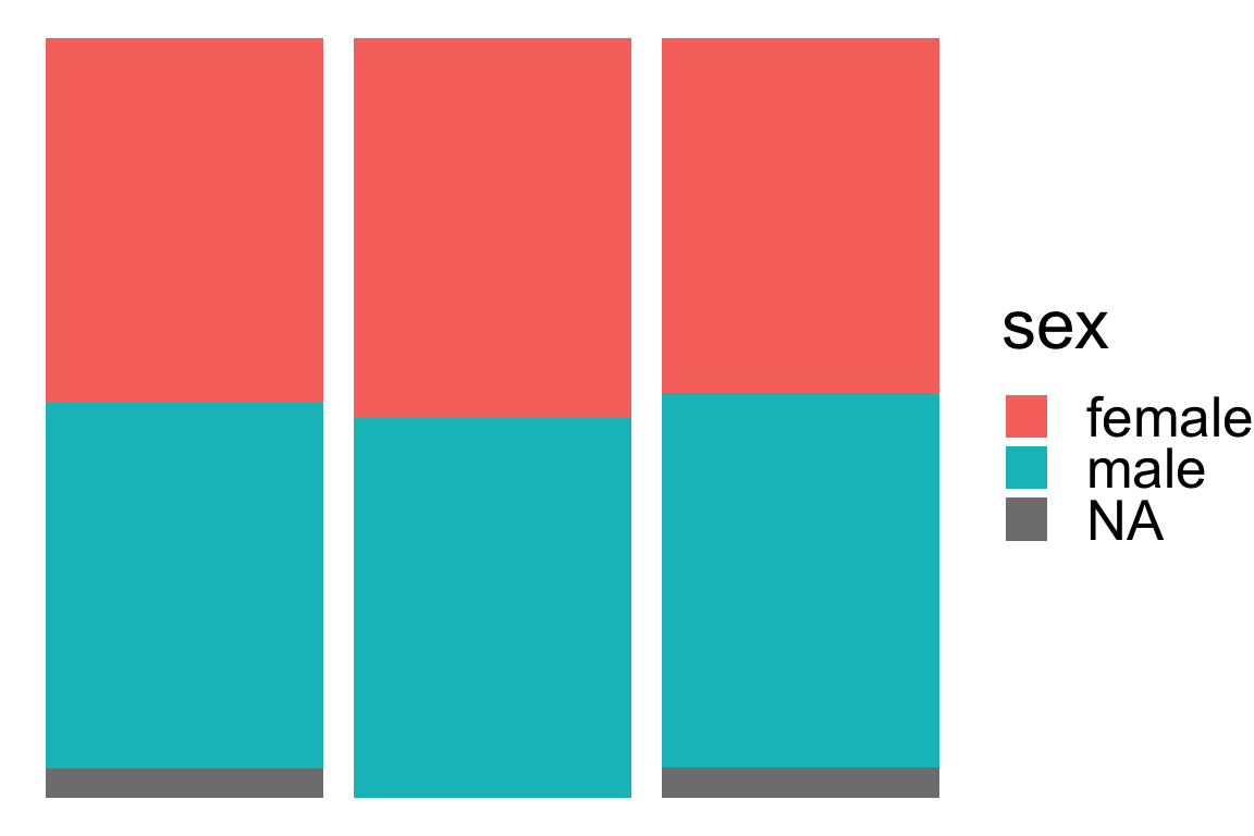 geom_bar()geom_col()geom_point()geom_tile()geom_density()geom_bar()stat = "count" is computing the frequencies for each category for you.stat_count() and change the geom.geom_col()stat = "count" to do the counting for you and use geom_col() instead.geom_bar(stat = "identity") where stat = "identity" means that you will take the value as supplied without any statistical transformation.position_dodge() for grouped barplotsposition_dodge2() for improved grouped barplotsposition_fill() for stacked percentage barplotsposition_identity() to use the raw positionsposition_jitter() to add random noise to pointsposition_jitterdodge() for jittered and dodged pointsposition_nudge() to shift the position by a fixed amountposition_stack() for stacked barplotscoord_polar()
