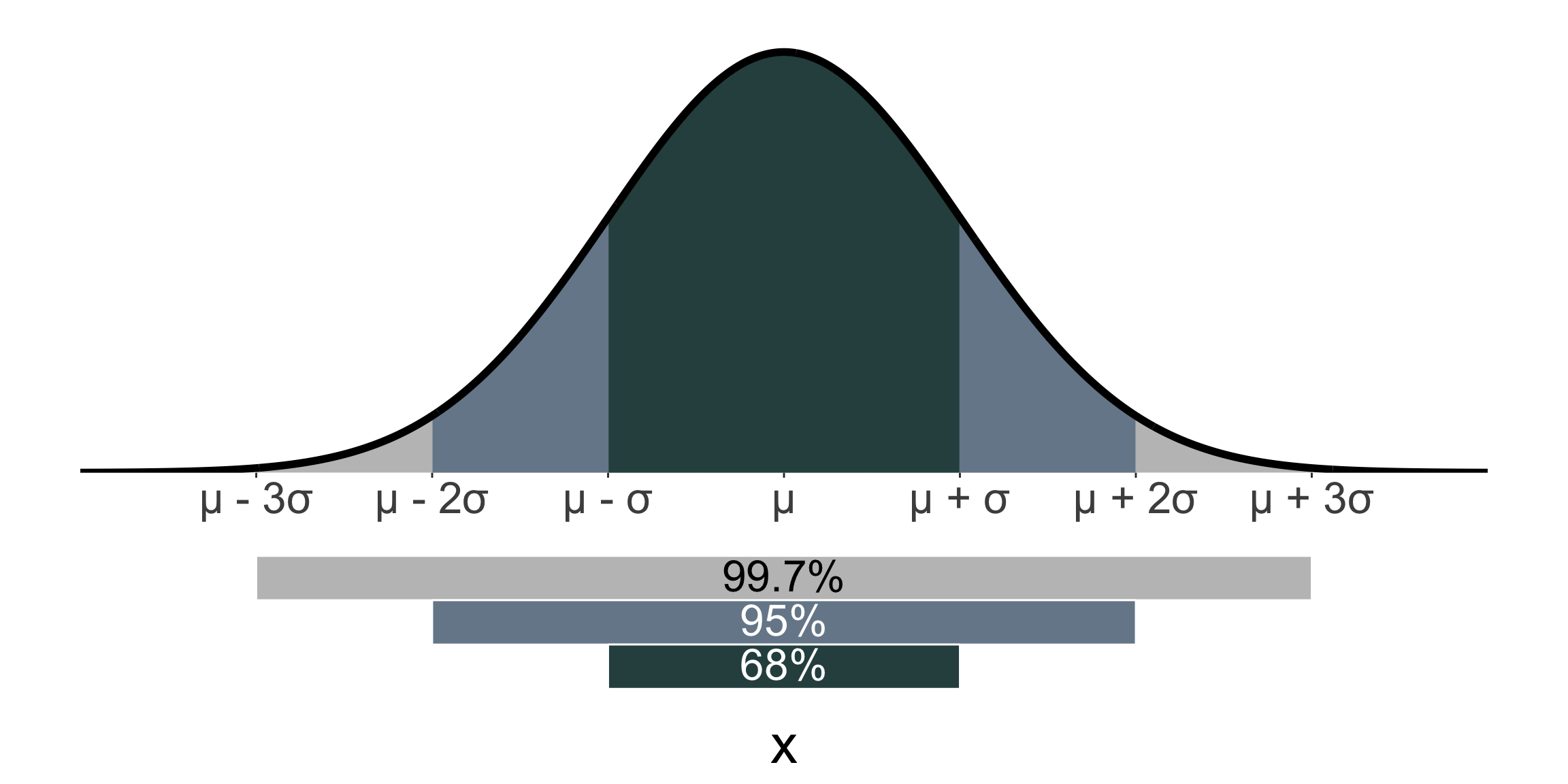 E.g. the average adult height is ~167cm, and the standard deviation is ~10cm based on US National Health and Nutrition Examination Survey (2017-2018) data. So assuming the distribution of adult heights is normal, approximately 99.7% of adults have a height between 137cm and 197cm.