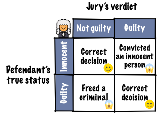 Two types of errors can occur in this process: