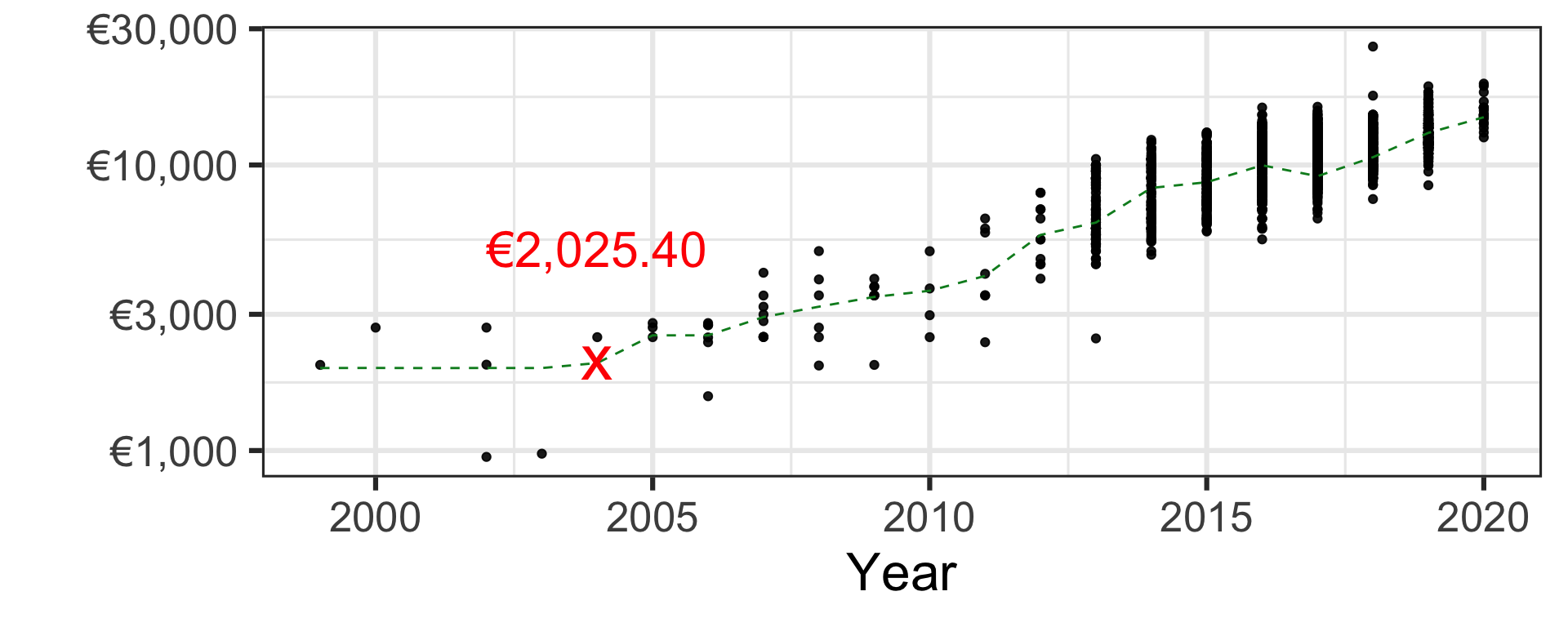 scale_y_log10(label = scales::dollar_format(prefix = "€", accuracy = 1)) +
