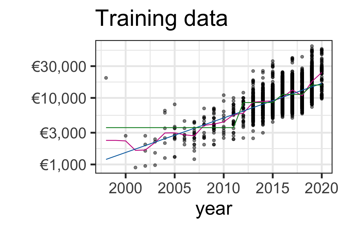 labs(title = "Training data", y = "", color = "") +