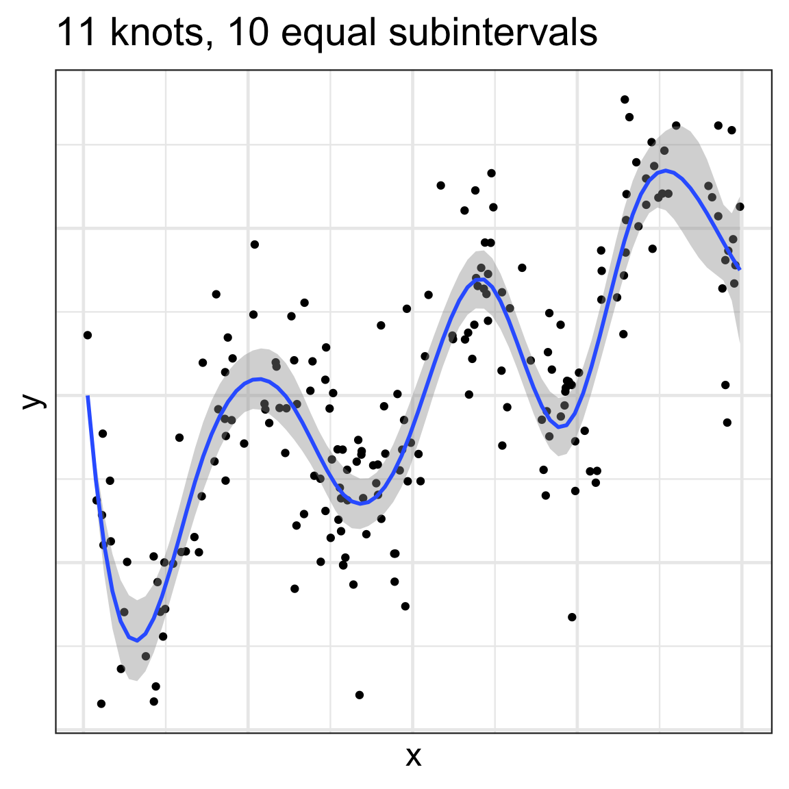 formula = y ~ splines::ns(x, df = nknot + 1),