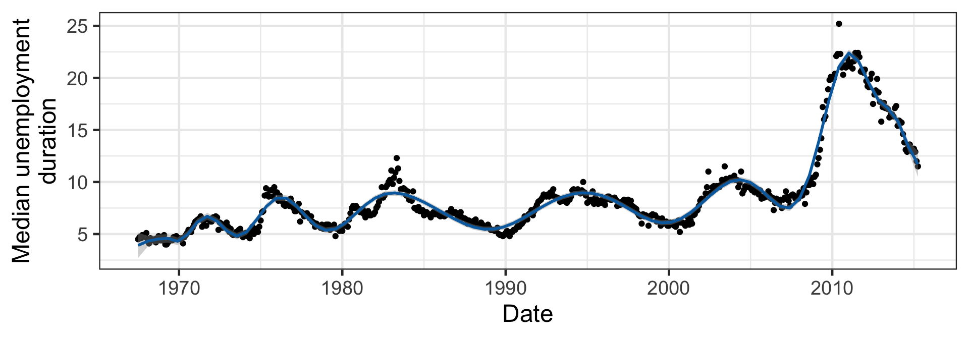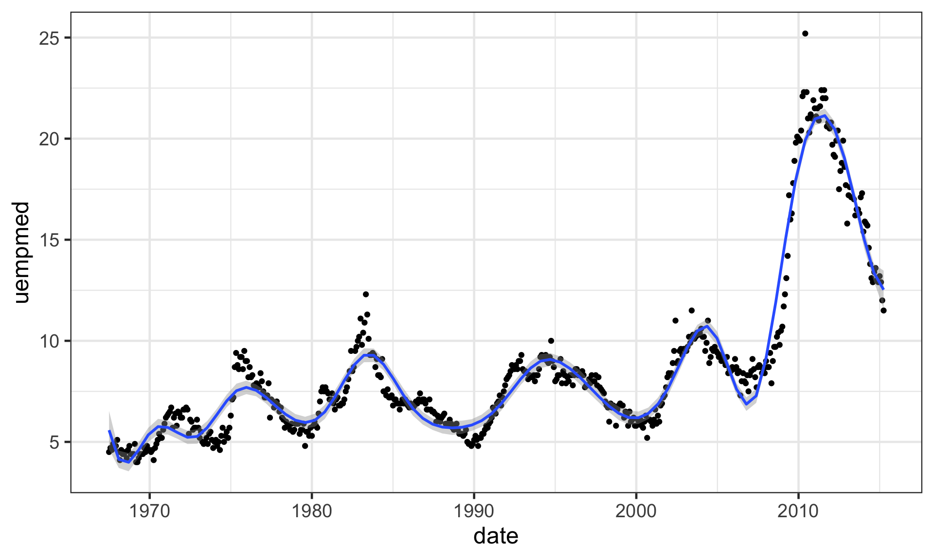 ggplot(aes(date, uempmed, nknot = nknot)) +