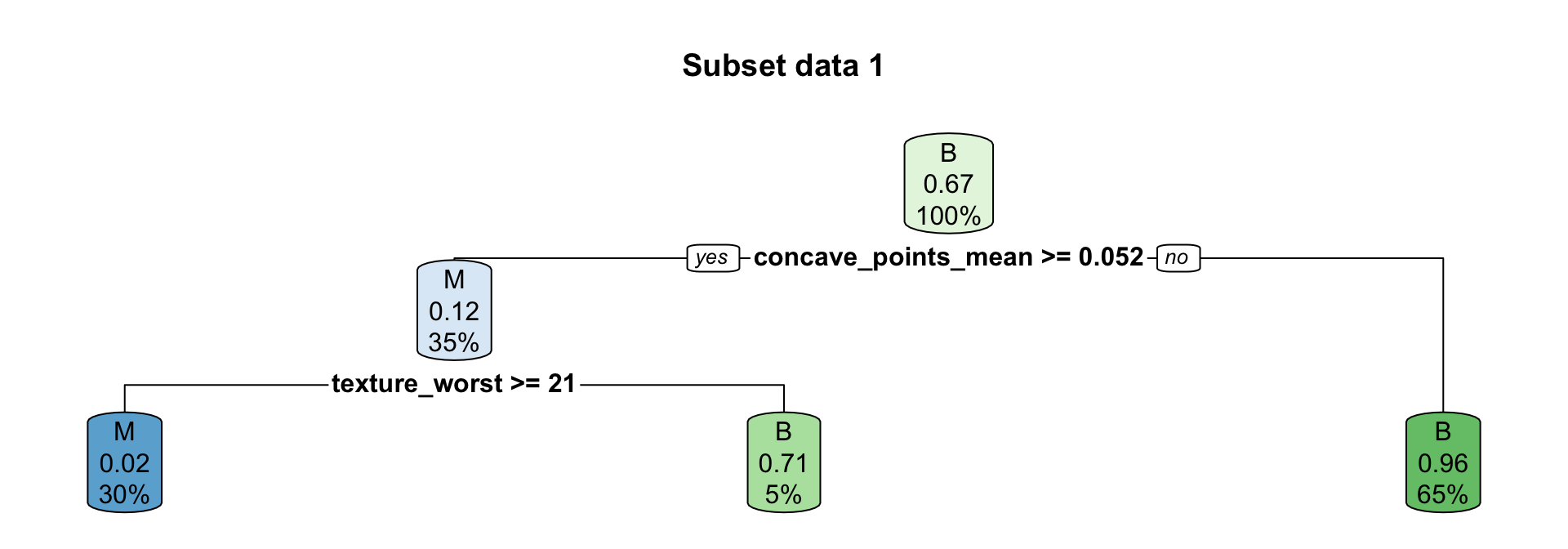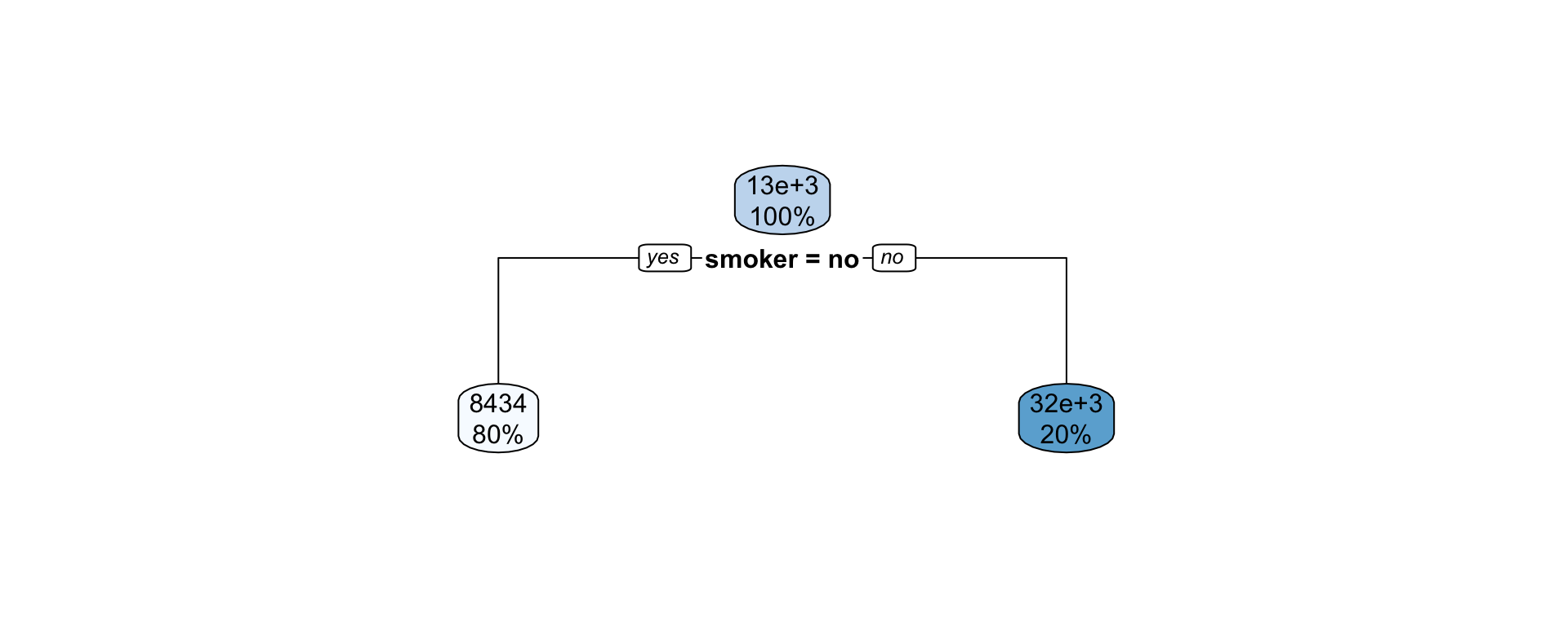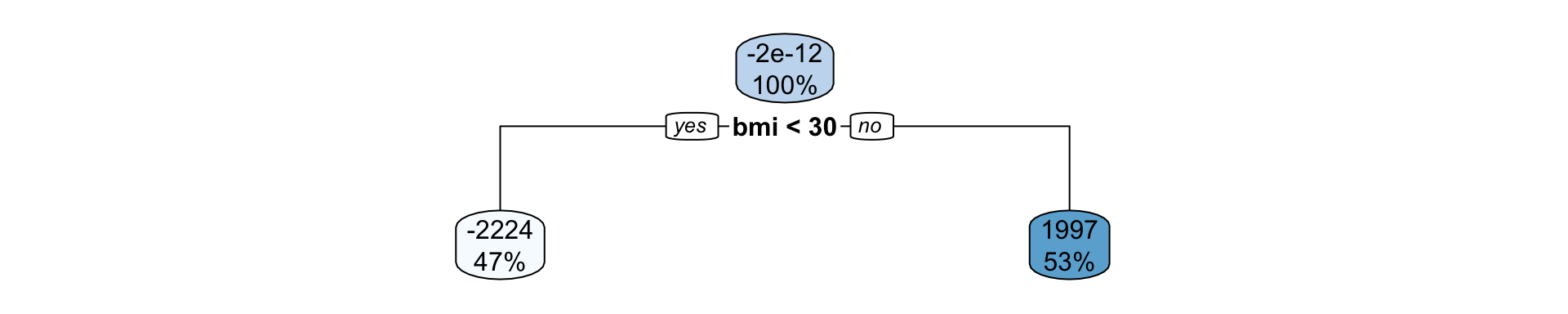 Suppose we fit a (shallow) regression tree, T^1, to y_1, y_2, \dots, y_n for the set of predictors \boldsymbol{x}_1, \boldsymbol{x}_2, \dots, \boldsymbol{x}_p.