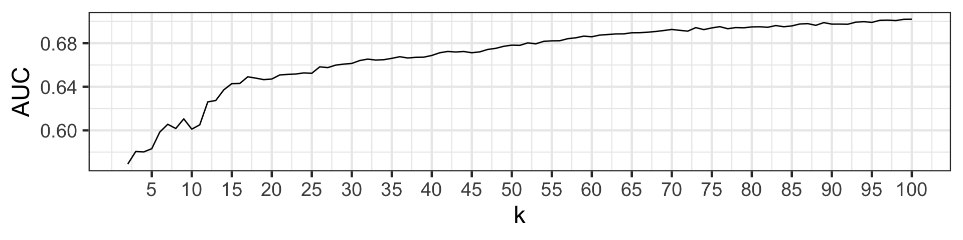 tibble(k = k, AUC = roc_auc_vec(testing(caravan_split)$Purchase,
