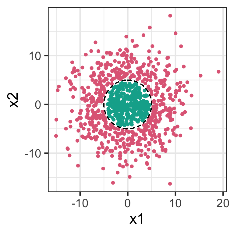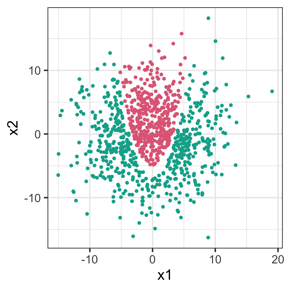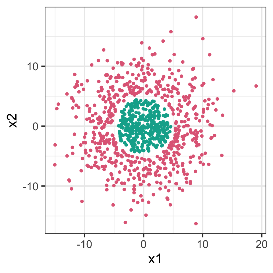 • Standard kernels include: \begin{align*} \text{Linear} \quad \mathcal{K}(\boldsymbol{x}_i, \boldsymbol{x}_k) & = \langle\boldsymbol{x}_i, \boldsymbol{x}_k \rangle \\ \text{Polynomial} \quad \mathcal{K}(\boldsymbol{x}, \boldsymbol{y}) & = (\langle\boldsymbol{x}_i, \boldsymbol{x}_k \rangle + 1)^d \\ \text{Radial} \quad \mathcal{K}(\boldsymbol{x}_i, \boldsymbol{x}_k) & = \exp(-\gamma\lvert\lvert\boldsymbol{x}_i-\boldsymbol{x}_k\lvert\lvert^2) \end{align*}