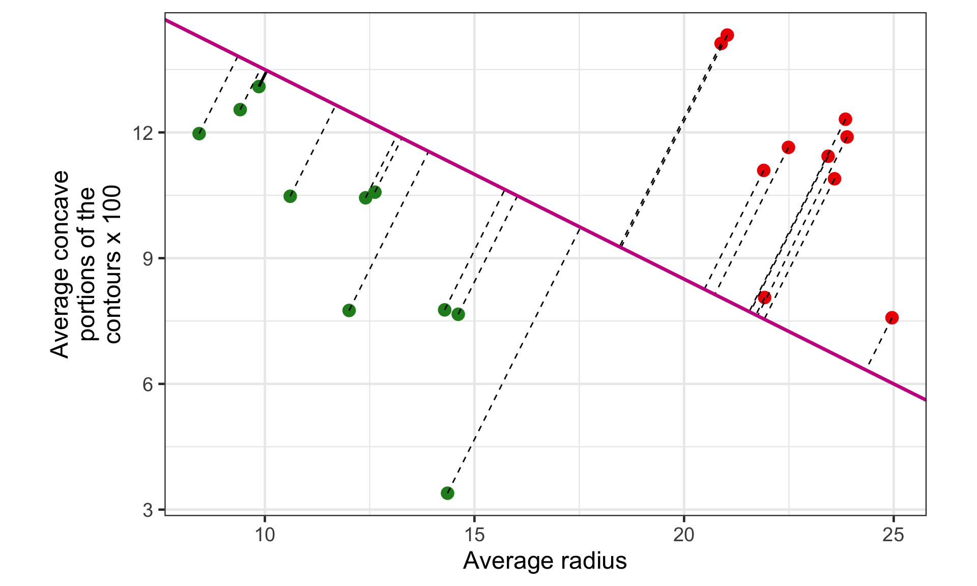 svmfitl <- svm(diagnosis ~ radius_mean + concave_points_mean,