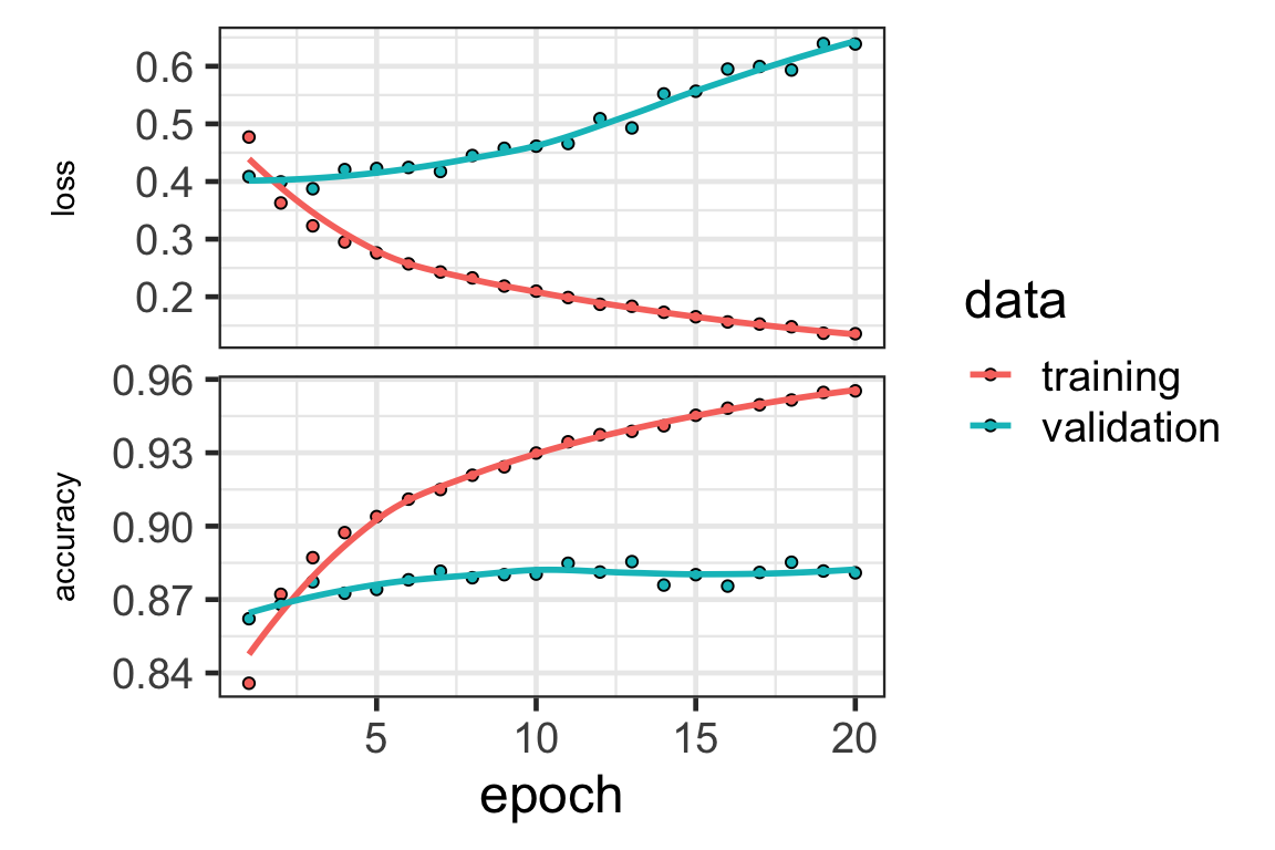 epochs is a large number.plot function on the training history.NNl and not learnNNl here! [,1] [,2] [,3] [,4] [,5]