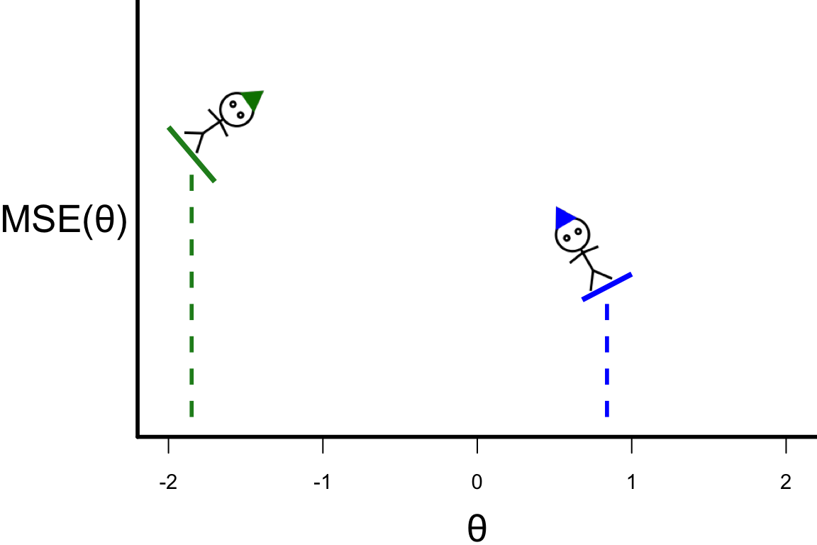 In evaluating \nabla \hat{\text{MSE}}(\boldsymbol{\theta}), we must evaluate \nabla (y_i - f(\boldsymbol{x}_i~|~\boldsymbol{\theta}))^2.