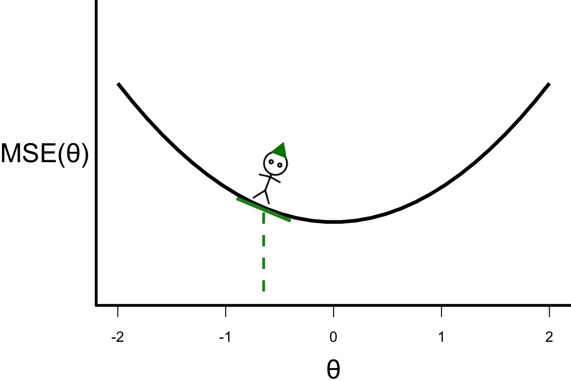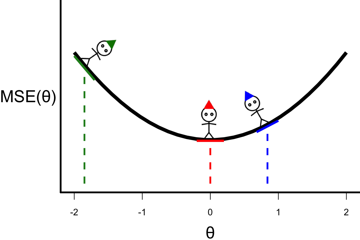 \theta^{[s+1]} = \theta^{[s]} - r \left.\frac{\partial\text{MSE}(\theta)}{\partial\theta}\right\vert_{\theta=\theta^{[s]}}