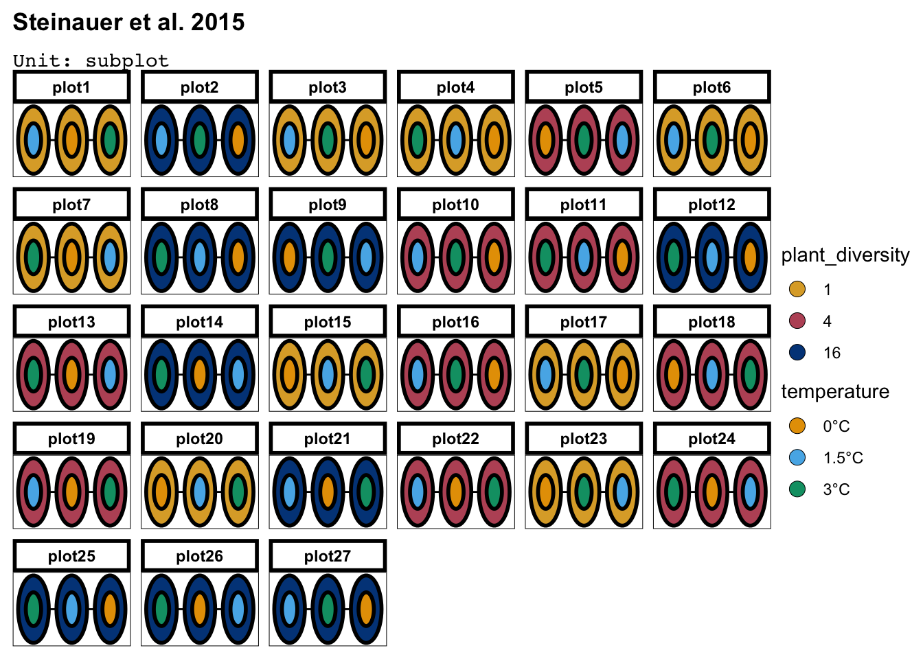 edibble 📦Steinauer et al. (2015) Plant diversity effects on soil microbial functions and enzymes are stronger than warming in a grassland experiment. Ecology. 96 (1) 99-112