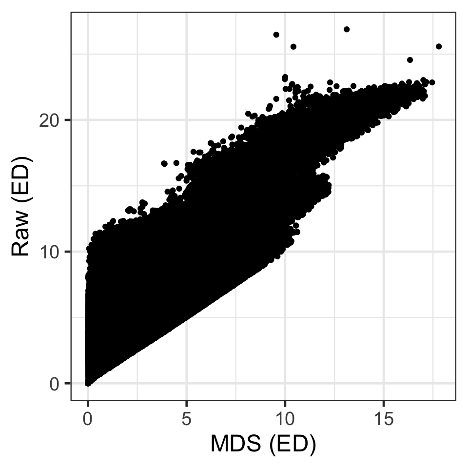 labs(x = "MDS (ED)", y = "Raw (ED)")