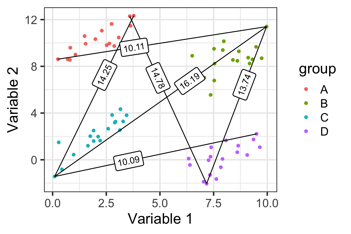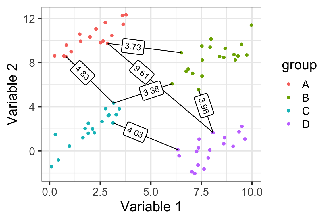 D(\mathcal{A}, \mathcal{B}) = \frac{1}{|\mathcal{A}||\mathcal{B}|}\sum_{i\in\mathcal{A}}\sum_{j\in\mathcal{B}}D(\boldsymbol{x}_i,\boldsymbol{x}_j)