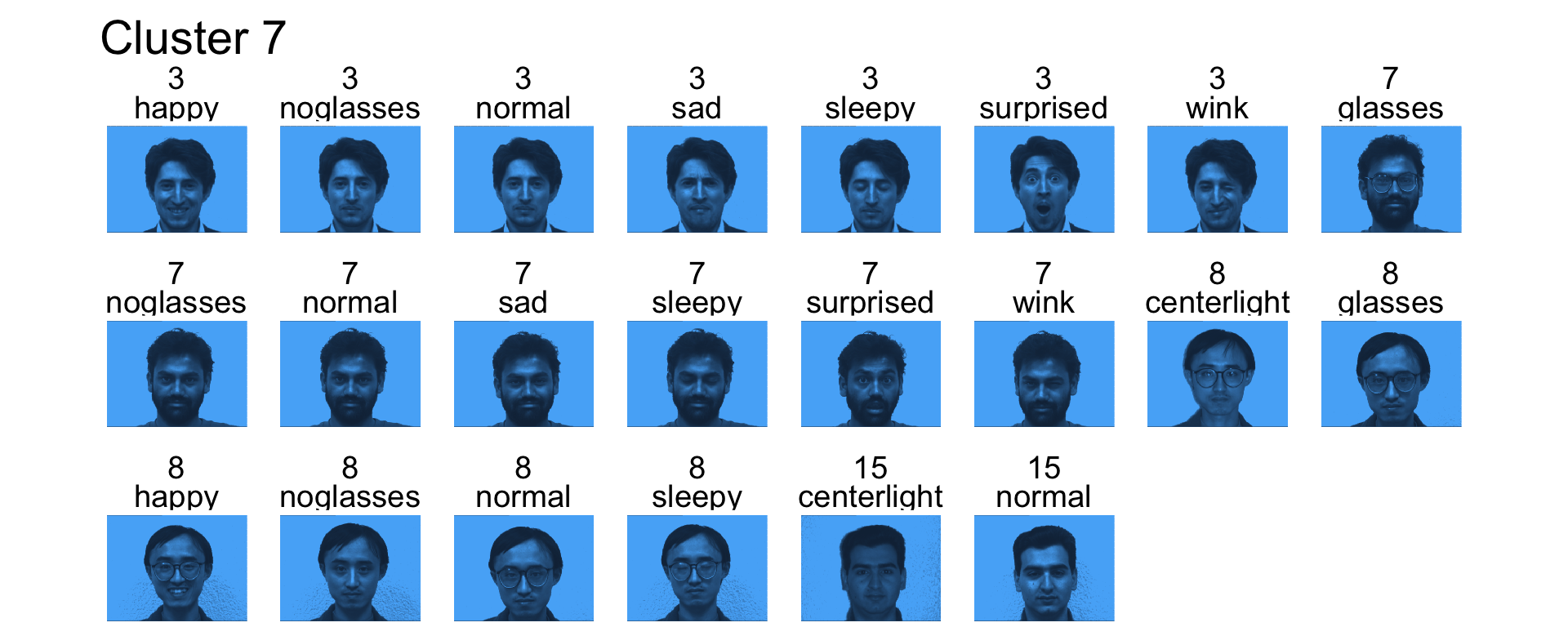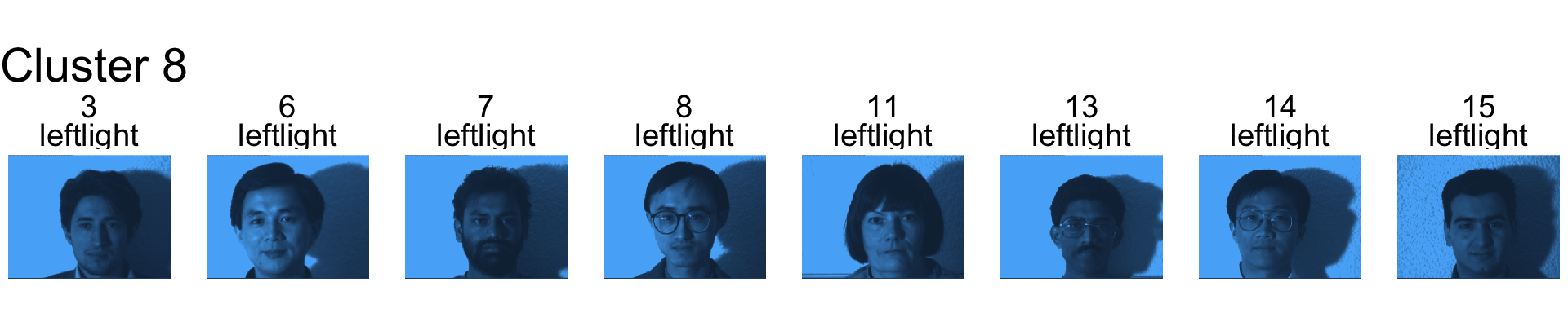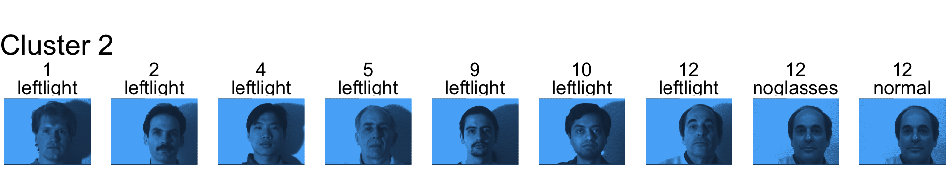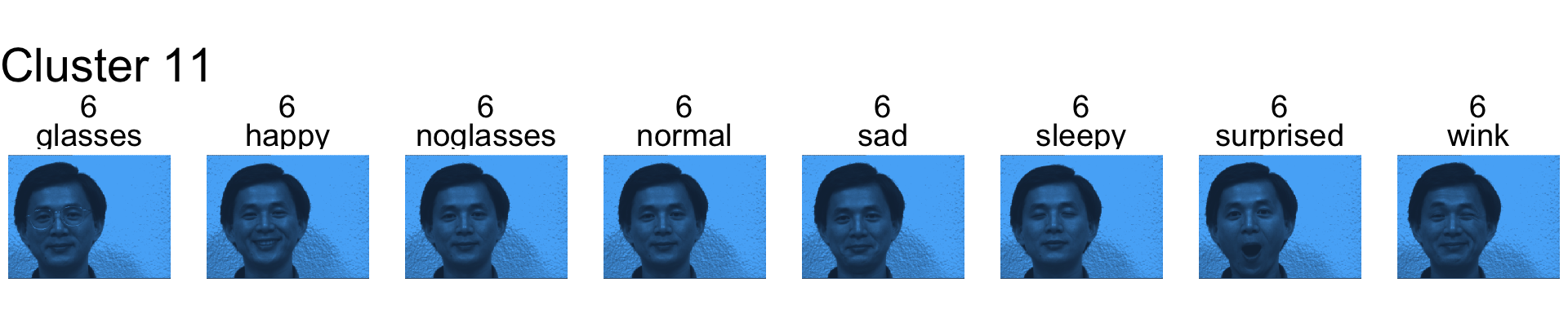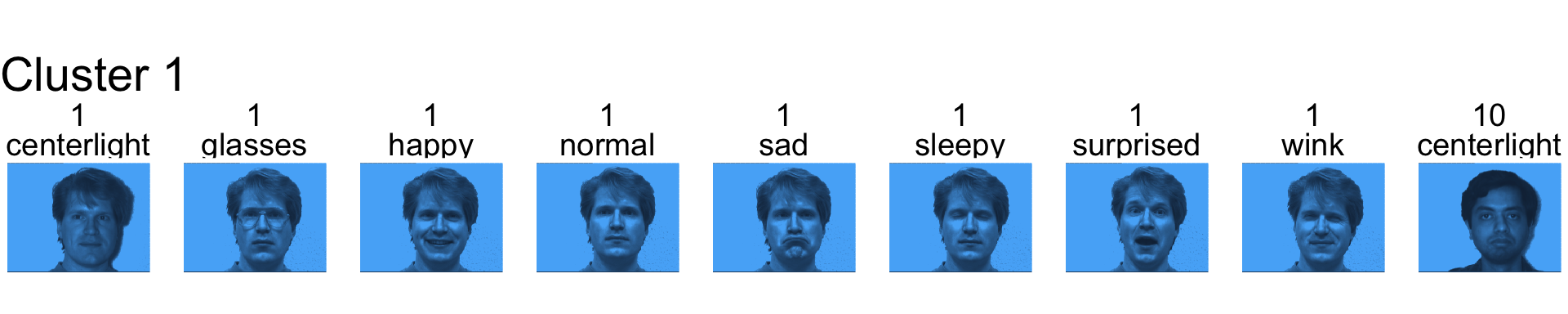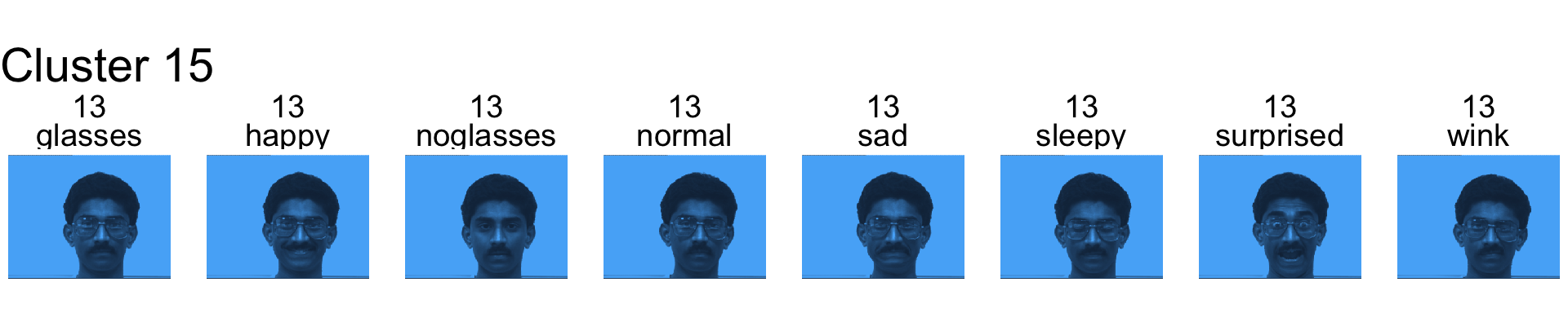 kout <- kmeans(yalefaces_pca$x, centers = 15) # `scale` the data if different measurement units