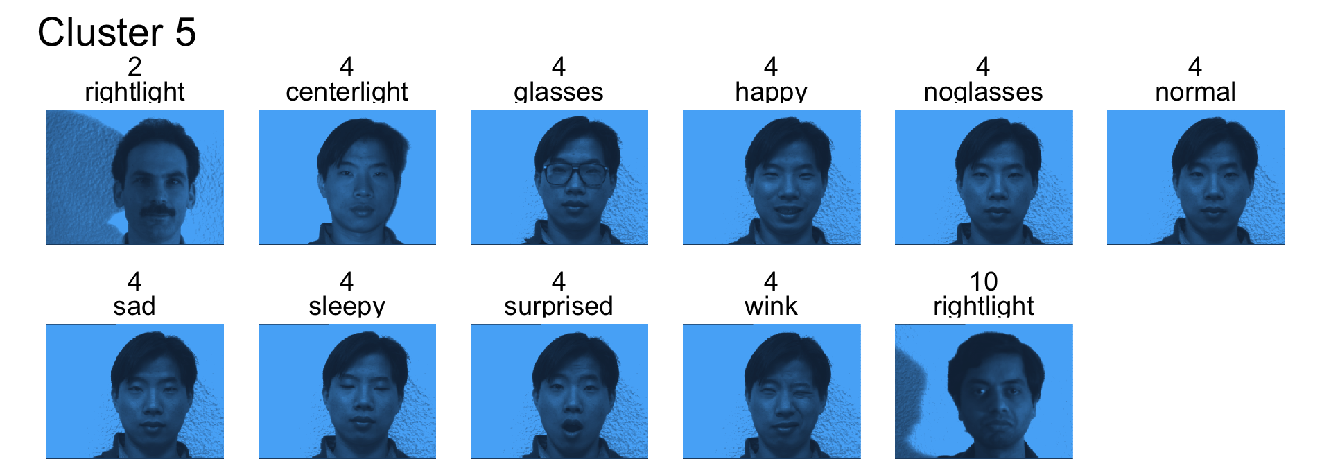 koutB <- kmeans(yalefaces_pca$x, centers = 5)