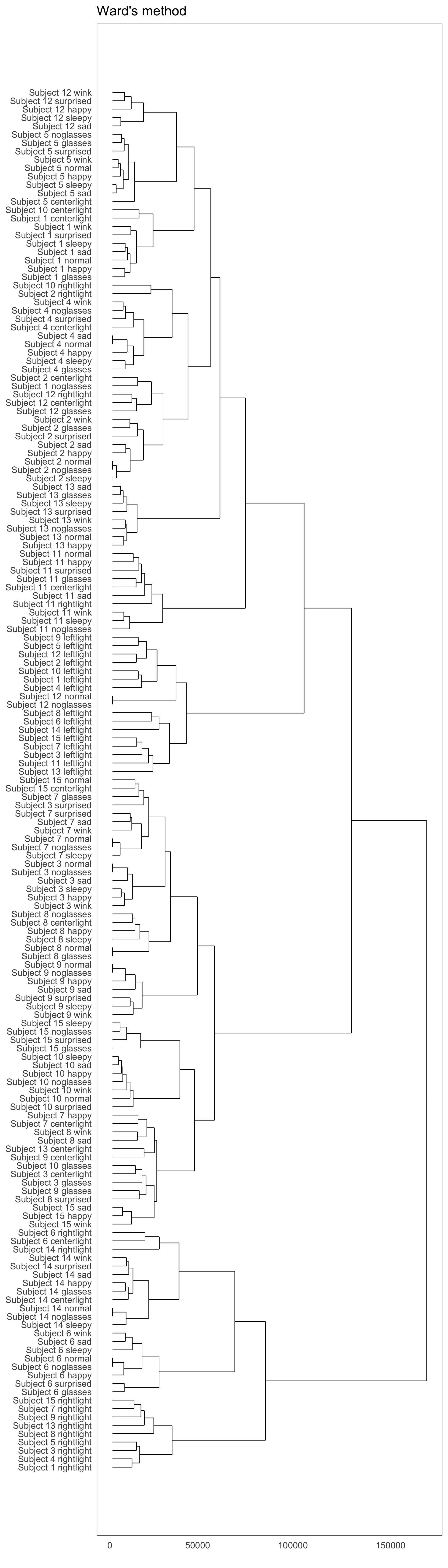 hward <- hclust(dist(yalefaces_pca$x), method = "ward.D2")