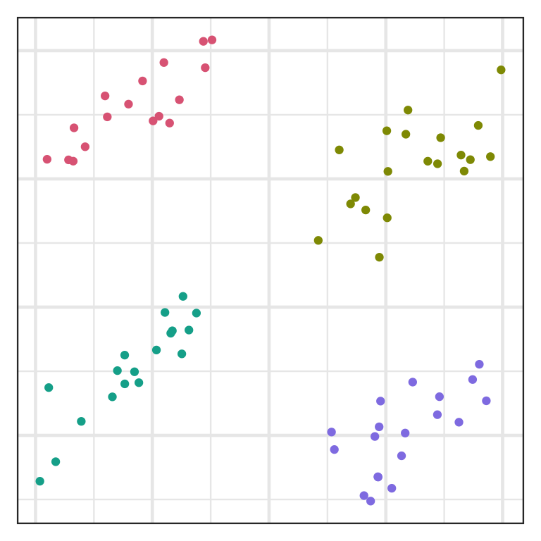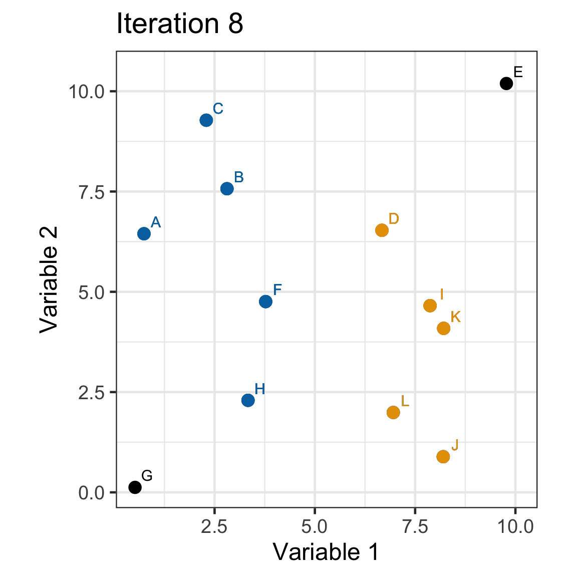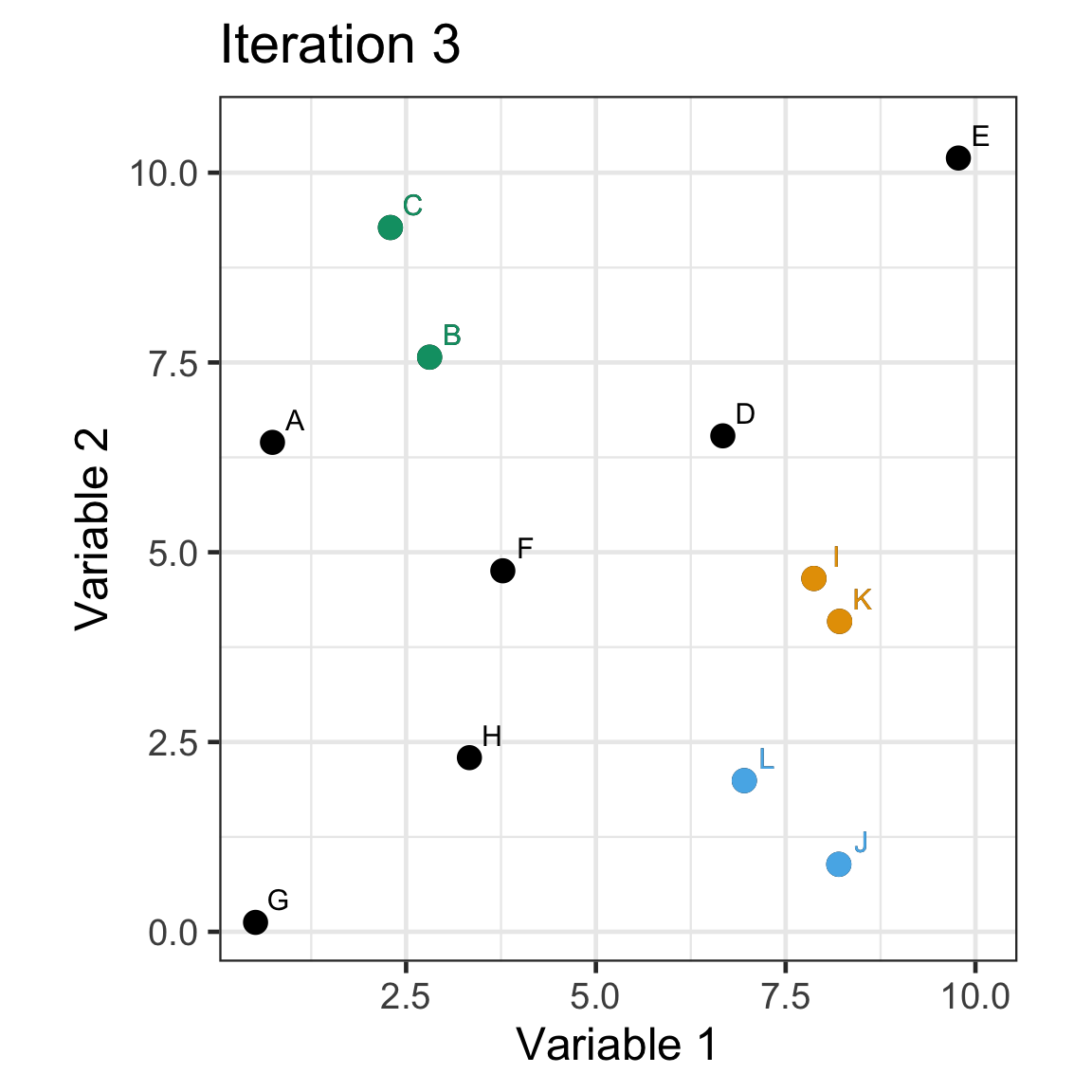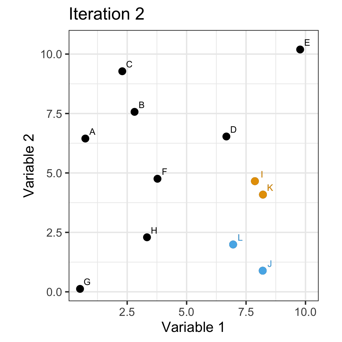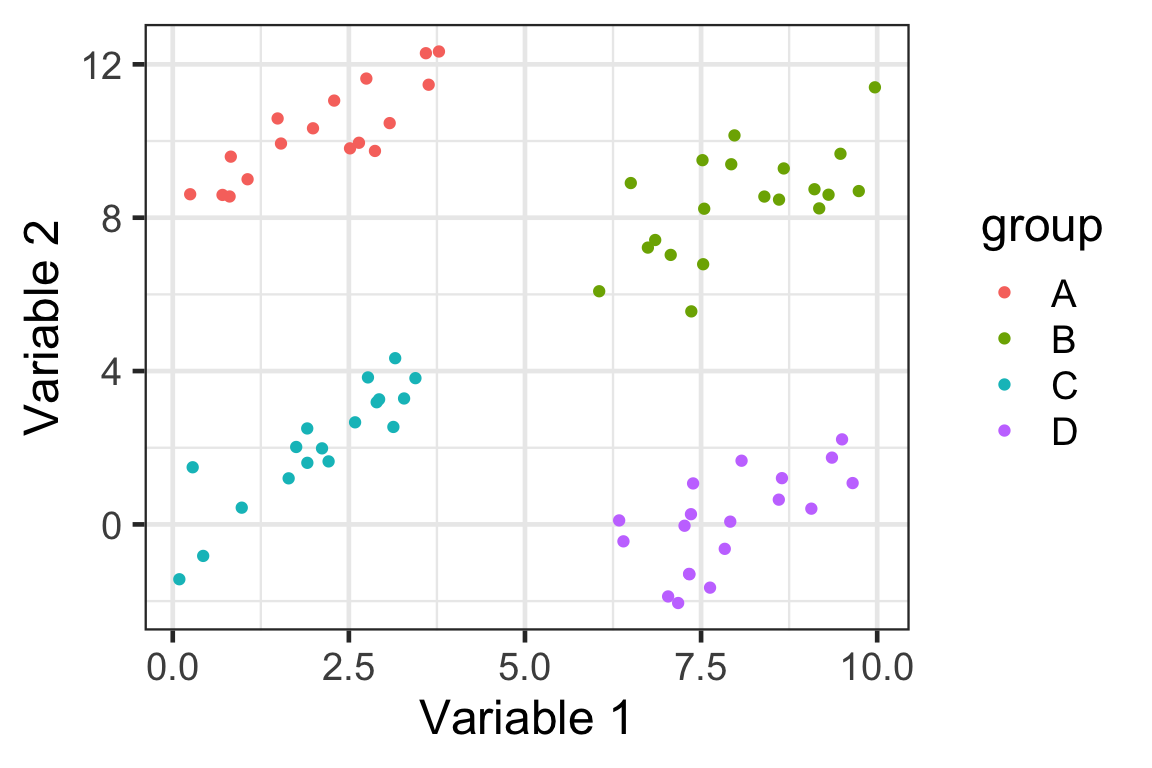 Minimises the total within-cluster sum of squares: W = \sum_{k = 1}^g \left(\sum_{i\in\mathcal{A}_k}\sum_{j=1}^p\left(x_{ij} - \bar{x}_{\cdot j}\right)^2\right) where: